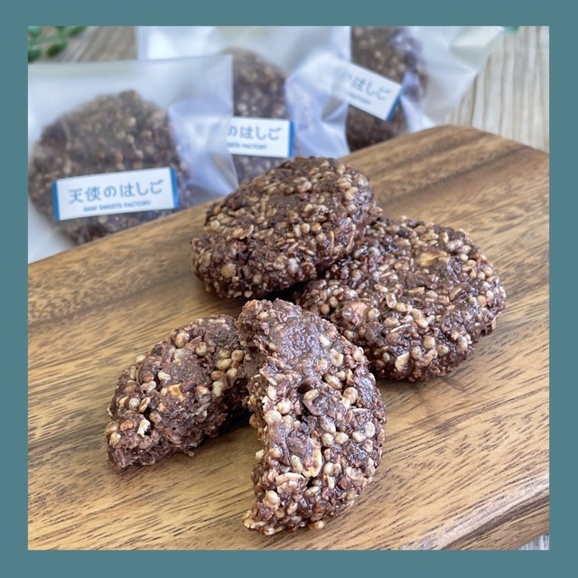 今、美容や健康面で注目されている【スーパーフード】のカカオニブをタップリ使い、オートミールやクリスピーキヌアで、さらにザクザク感を出しました。 甘味には、自然由来のココナッツシュガー、デーツ(ナツメヤシの実)使用しています。 ココナッツオイルで冷し固めた焼かないクッキーです。 ※12月中のご注文と発送については、トップページを参照お願いいたします。  使用材料:有機ローカカオニブ、有機ココナッツシュガー、アーモンドプードルロースト、有機ココナッツオイル、有機オートミール、有機クリスピーキヌア   アレルギー表示品目:アーモンド 栄養成分表示   1個当たり(約20g)  ※推定値      エネルギー    101.8kcal      タンパク質     1.7g      脂   質     6.8g      炭水化物      9.8g      食塩相当量     0.0g ※賞味期限は製造日から1ヵ月です。 ※発送の場合、賞味期限がなるべく3週間以上あるものをお送りしております。 ※お届けはクール便での発送となります。 ※冷蔵庫から出したら、冷たいうちにお召し上がりください。  常温ですと、溶けてしまいます。 ※一度溶けた場合は、冷蔵庫で冷し固めて、なるべくお早めにお召し上がり下さい。 領収書(手書き)ご希望の方は、備考欄へ、宛名・但書など、ご希望の記載の内容を記入お願いします。