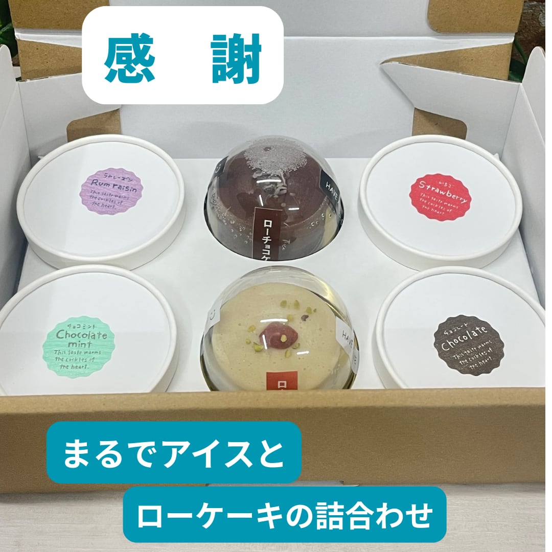 「まるでのアイス」のチョコレート・チョコミント・イチゴ・ラムレーズンの4つのフレーバーと、ミニのチョコレートケーキとチーズケーキの詰合わせです。通常価格の20%OFFにてお届けいたします。1年間頑張ったご自分へのご褒美に、体に優しいロースイーツはいかがでしょうか。 賞味期限は2026年1月15日となっております。