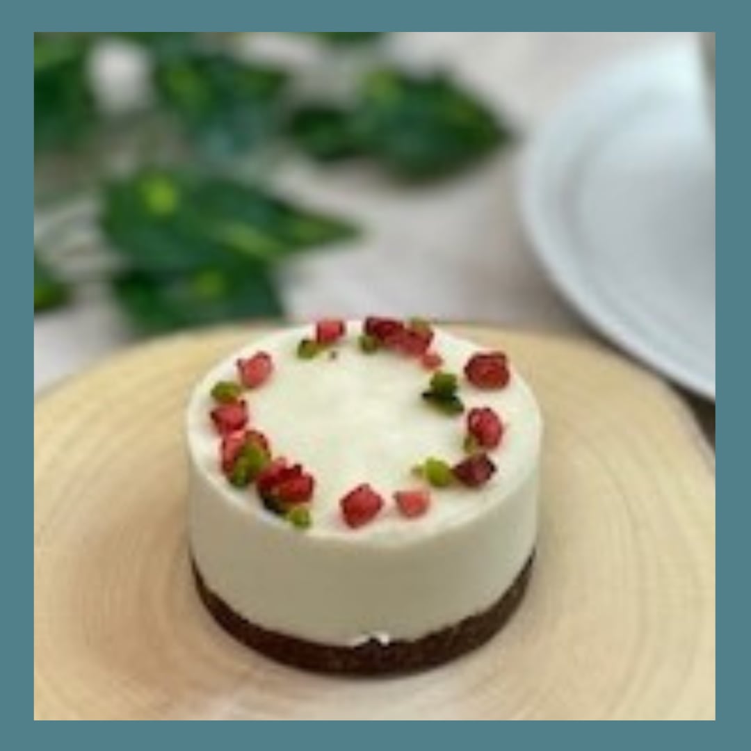 クラスト部分は、生アーモンドを使用し、焼かずに作ります。フィリング部分は、乳製品を使用せず、レモン汁を入れて、チーズケーキの風味を漂わせております。これひとつでも、満足感が得られます。